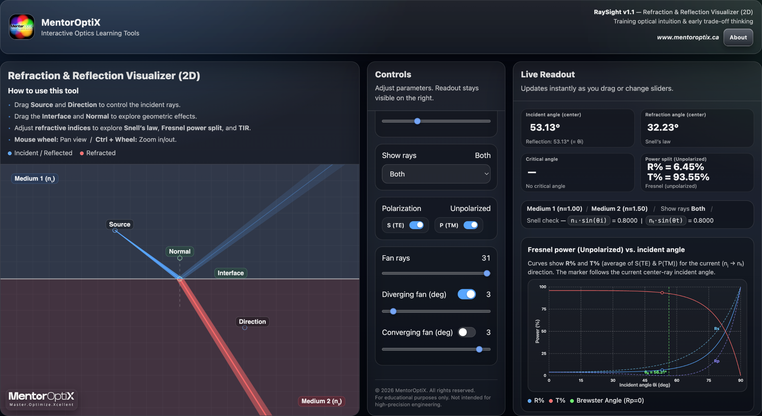 Interactive tools designed to support geometric understanding and physical intuition in optics.